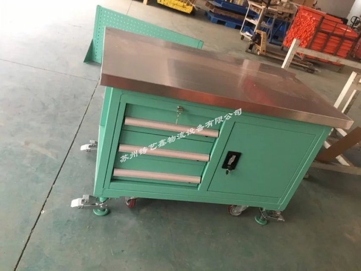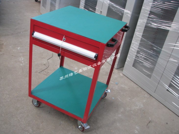 工具車是可以移動(dòng)的工具柜,適合在生產(chǎn)現(xiàn)場(chǎng)安全、合理地運(yùn)送工具和配件。 工具車由各種型號(hào)的工具柜增加頂柜和腳輪等移動(dòng)部件組成。 工具車的外型尺寸的高度:重型工具車為所選用的工具柜的高度加上140mm;輕型工具車為所造工具柜高度加上80mm。高強(qiáng)度的結(jié)構(gòu)設(shè)計(jì)和陰極電泳底漆表面處理工藝,能適應(yīng)工廠較復(fù)雜的工作環(huán)境。