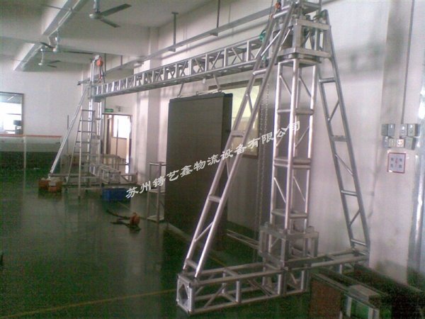 龍門架(移動起吊小龍門架)是根據中、小工廠(公司)日常生產需要搬運設備、倉庫進出貨,起吊維修重型設備及材料運輸的需要,開發出來的新型小型起重龍門架。形象如盤龍柱因此得名。適用于制造模具、汽修工廠、礦山、土建施工工地及需要起重場合。常見的在建筑施工中兼作材料運輸和施工人員的上下使用,實現起重機械化。可減少人力,降低生產運營成本,提高工作效率。 該移動龍門架優點是可移動性,可快速拆卸安裝,占地面積小,用微型汽車就可轉移到另一個場地安裝使用。寬度、高度可分級調節,鋼架構設計合理,能承受從100~5000KG重量。尤其適用于車間設備的安裝、搬運、調試。 汽車上貨物的裝卸,汽修車間吊裝發動機大件等。起重小龍門架主要有二種規格:一是在地面上移動的龍門架,帶剎車承重輪可在地面上移動,適合在地面上起吊物品;二是用鋼軌固定安裝在樓板面或梁上,通過電動或人力葫蘆,實現起重機械化?蓽p少人力,降低生產運營成本,提高工作效率。