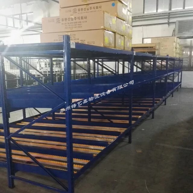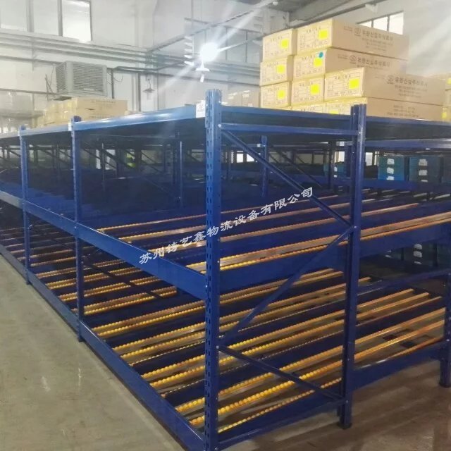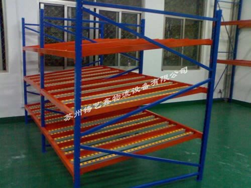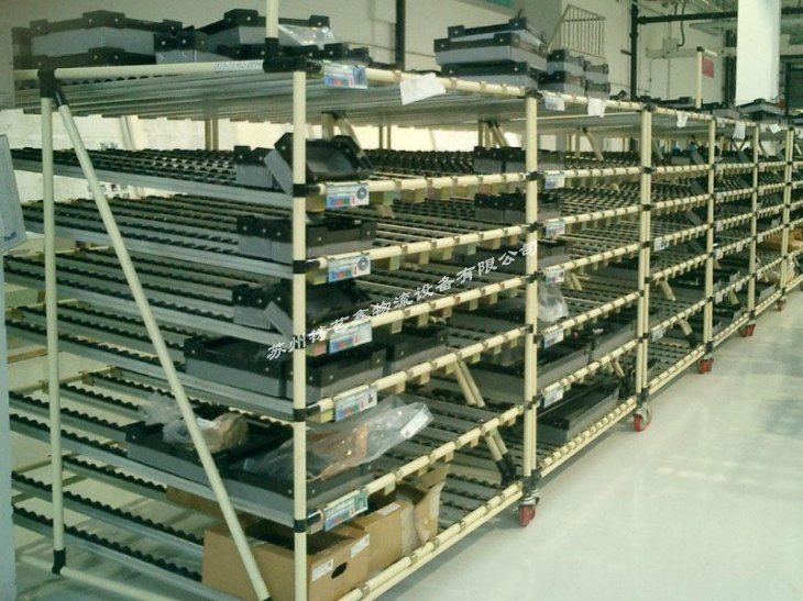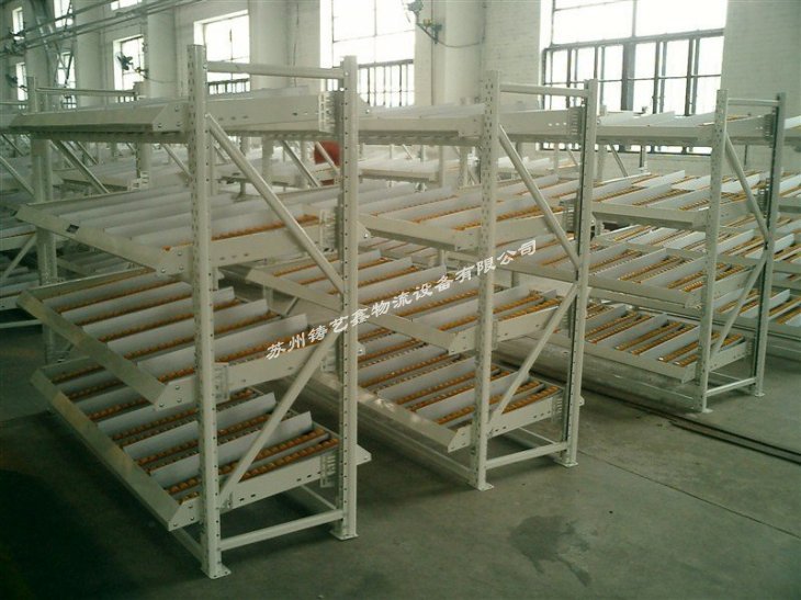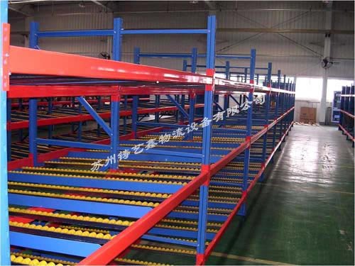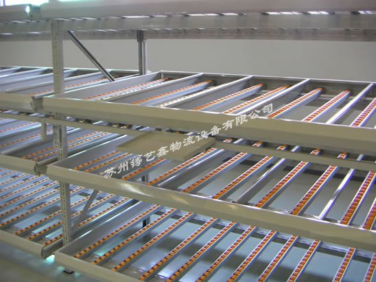 流利貨架等同于流利式貨架,產(chǎn)品常由中型橫梁式貨架演變而成,通過滾道將貨物從配貨端輸送到取貨端,貨物借助重力自動下滑,可實(shí)現(xiàn)“先進(jìn)先出”作業(yè),使用成本低,存儲速度快、密度大。通常使用在企業(yè)的精益生產(chǎn)流水作業(yè)。 流利貨架的特點(diǎn): 1、采用滾輪式鋁合金等流力條,利用貨物自重實(shí)現(xiàn)貨的先進(jìn)先出。 2、存取方便,適合于裝配線兩側(cè),配送中心等場所。 3、適用于大批量同類貨物的存儲,空間利用率較高,由其適合汽配工廠使用。 4、可配以電子標(biāo)簽,實(shí)現(xiàn)貨物的信息化管理。