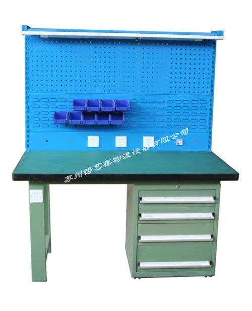 工作臺采用冷扎板精工制作而成,堅固的工作桌框架,牢固平穩,可使工作桌承重1000kg;多種工作桌面選擇,可配合不同使用的要求;工具吊柜(箱),側柜(箱)燈架,調節腳杯,,外形美觀;層板,抽屜質量上乘,承重大,抽屜內可根據需要任意分隔;節約空間,適用性強。